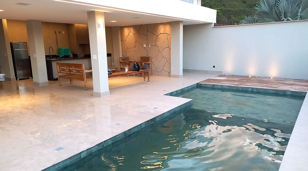 Para esta reforma residencial, realizamos a ampliação e reforma da área gourmet.