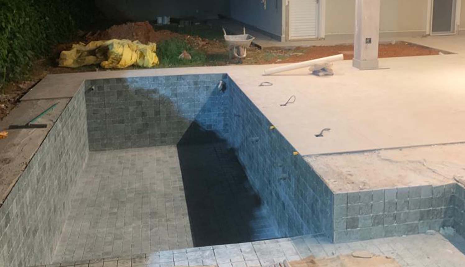 A execução da piscina em um terreno de aterro nos exigiu uma apuração do estado em que o solo se encontrava. Através de sondagem do solo verificamos em que profundidade teríamos que apoiar nossas estacas.